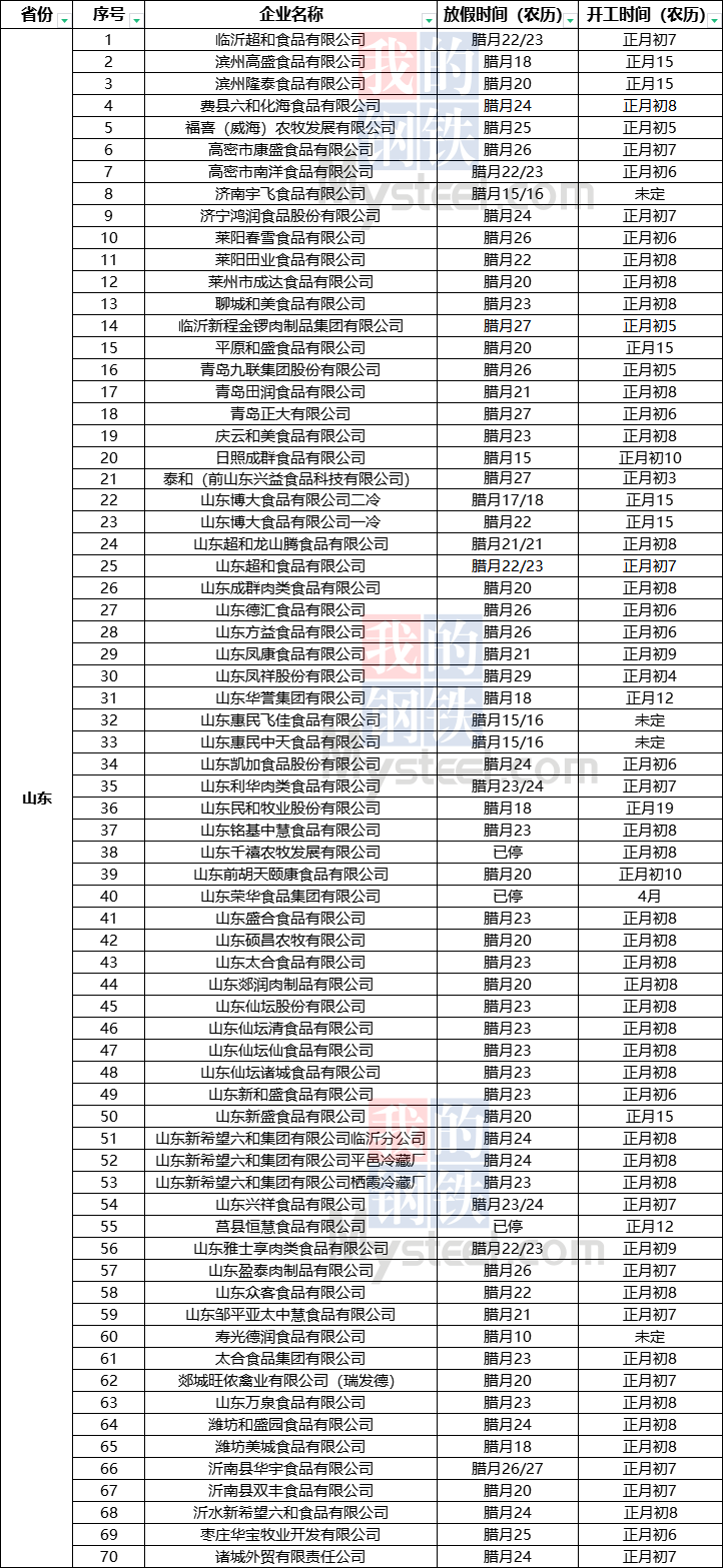 ??特別提醒:由于本次放假開工時(shí)間統(tǒng)計(jì)時(shí)間跨度較長(zhǎng),且年前行情波動(dòng)較大,部分企業(yè)放假時(shí)間節(jié)點(diǎn)或有1-2天左右的變動(dòng),若繼續(xù)維持當(dāng)下屠宰虧損和庫(kù)存上漲局面,不排除不少企業(yè)有趕計(jì)劃前移放假時(shí)間點(diǎn)的操作,圖表內(nèi)容僅供參考。