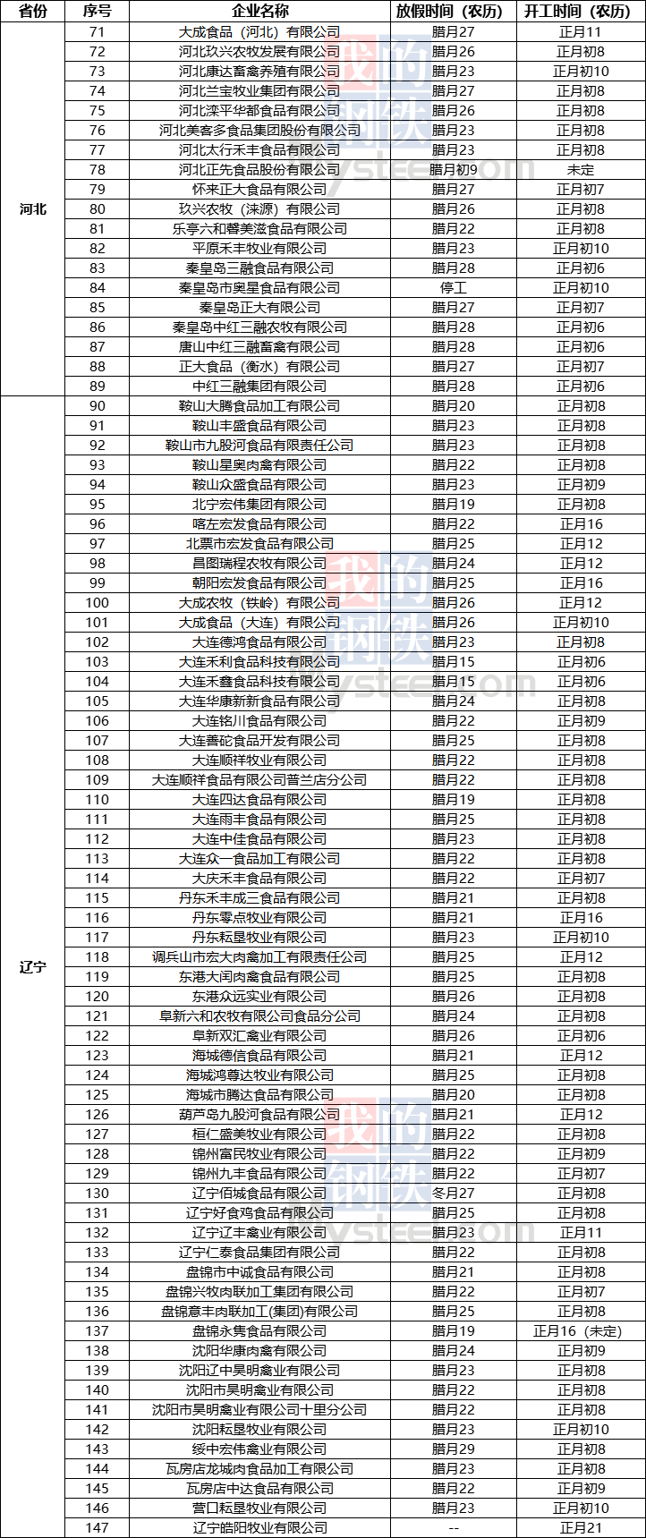 ??2024年全國(guó)206家白羽肉雞屠宰企業(yè)春節(jié)放假及開工時(shí)間統(tǒng)計(jì)表圖片