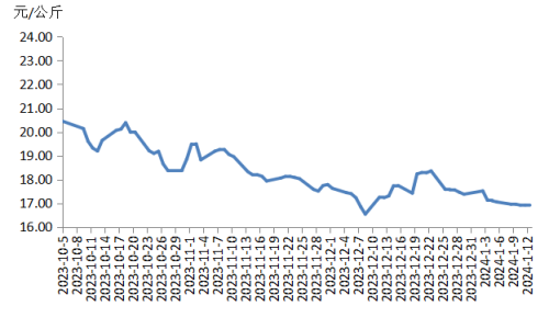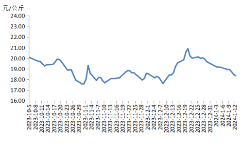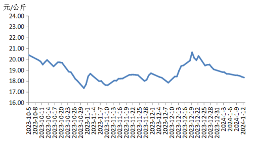 本周國內(nèi)瘦肉型白條豬肉出廠價格(以下簡稱“豬肉價格”)環(huán)比下跌。周內(nèi)散養(yǎng)戶和規(guī)模養(yǎng)殖場出欄生豬的積極性較高,宰后均重處于偏高水平,白條豬肉供應充裕。目前腌臘、灌香腸活動熱度下降,春節(jié)前備貨期尚未來臨,豬肉需求量偏低,白條豬肉價格下跌。