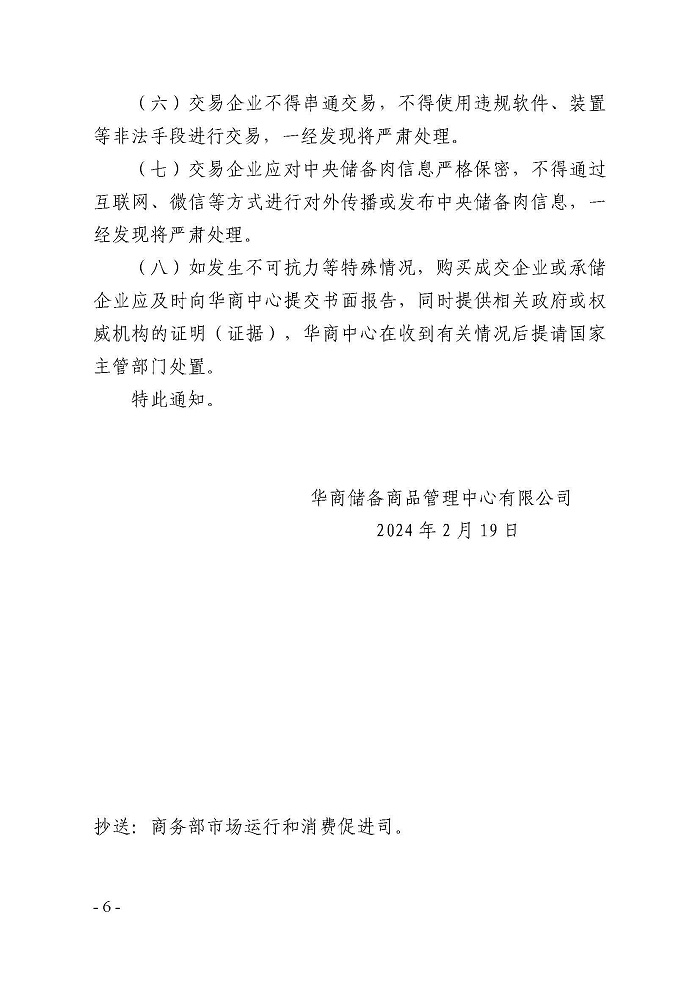 華儲網(wǎng)2月19日發(fā)布關(guān)于2024年2月23日中央儲備凍豬肉輪換出庫競價交易有關(guān)事項的通知。本次出庫競價交易掛牌1.4萬噸,以實際掛牌為準(zhǔn)。交易時間為2024年2月23日上午8:30-11:30。