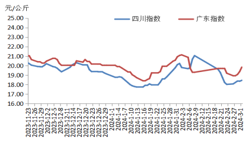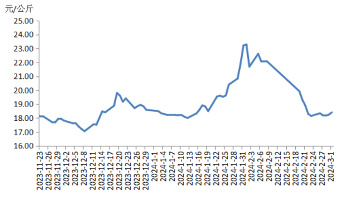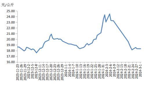 本周華東地區(qū)豬肉價(jià)格環(huán)比下跌。周初,規(guī)模養(yǎng)殖場和散養(yǎng)戶出欄量恢復(fù)正常,生豬及豬肉供應(yīng)相對充足;元宵節(jié)過后,下游豬肉訂單量縮減,高價(jià)豬肉銷售速度緩慢,屠宰企業(yè)降價(jià)銷售。隨后,規(guī)模養(yǎng)殖場出欄量減少,生豬及豬肉供應(yīng)偏緊,同時(shí),終端需求仍疲軟,市場上供需僵持,白條豬肉價(jià)格穩(wěn)定運(yùn)行。