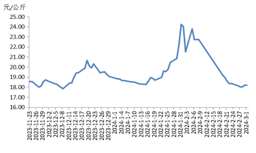 本周國內(nèi)瘦肉型白條豬肉出廠價(jià)格(以下簡稱“豬肉價(jià)格”)環(huán)比下跌。本周生豬出欄量逐漸恢復(fù),部分地區(qū)散養(yǎng)戶因看好后市而壓欄惜售,生豬及豬肉供應(yīng)較上周增幅有限。受元宵節(jié)提振和學(xué)校開學(xué)影響,豬肉需求略有好轉(zhuǎn),但總體依舊偏弱??傮w看,豬肉供應(yīng)略大于需求,價(jià)格下跌。