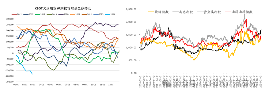 遠(yuǎn)期價(jià)格結(jié)構(gòu)也暗示南美的CNF上行空間有限,但更值得言說的是,新季種植面積的不及預(yù)期基本就暗示過剩定價(jià)的階段性結(jié)束,后期在沒有進(jìn)一步利空的情況下,基金空頭逐步開啟減持,而后用經(jīng)典的“天氣升水”敘事賦予價(jià)格上行以合法性,此間來自于資源品牛市帶來的風(fēng)險(xiǎn)偏好溢出,有望實(shí)現(xiàn)多頭預(yù)期漣漪型擴(kuò)散逐步填平商品估值洼地,畢竟CBOT大豆的相對(duì)定價(jià)有些偏低了。