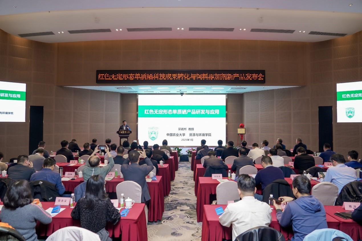 為貫徹落實(shí)黨的二十屆三中全會(huì)精神和習(xí)近平總書(shū)記關(guān)于“扎實(shí)推動(dòng)科技創(chuàng)新和產(chǎn)業(yè)創(chuàng)新深度融合,助力發(fā)展新質(zhì)生產(chǎn)力”的重要指示,中國(guó)農(nóng)業(yè)大學(xué)專利成果“利用枯草芽孢桿菌生物合成納米硒的方法及其應(yīng)用(專利號(hào):ZL201610566900.1)”在北京華美源科技發(fā)展有限公司進(jìn)行了落地轉(zhuǎn)化,該專利成果于2024年12月正式獲批農(nóng)業(yè)農(nóng)村部飼料添加劑新產(chǎn)品證書(shū)(紅色無(wú)定形態(tài)單質(zhì)硒,新飼證字(2024)09號(hào),中華人民共和國(guó)農(nóng)業(yè)農(nóng)村部公告第862號(hào))。為進(jìn)一步加快專利成果的產(chǎn)業(yè)化應(yīng)用,2025年1月21日,“紅色無(wú)定形態(tài)單質(zhì)硒科技成果轉(zhuǎn)化與飼料添加劑新產(chǎn)品發(fā)布會(huì)”在中國(guó)農(nóng)業(yè)大學(xué)召開(kāi),會(huì)議由中國(guó)農(nóng)業(yè)大學(xué)指導(dǎo),中國(guó)農(nóng)業(yè)大學(xué)社會(huì)服務(wù)處、中國(guó)農(nóng)業(yè)大學(xué)資源與環(huán)境學(xué)院、中國(guó)農(nóng)業(yè)大學(xué)動(dòng)物科學(xué)技術(shù)學(xué)院主辦,北京華美源科技發(fā)展有限公司承辦。