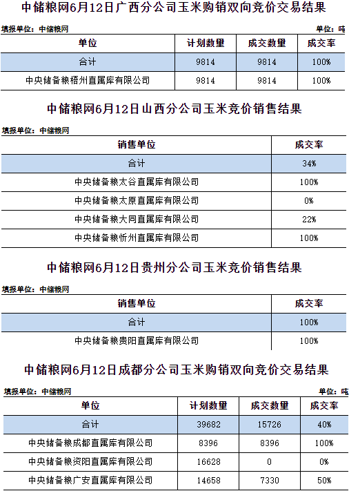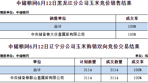 中儲糧網(wǎng)2025年6月12日玉米競價交易結(jié)果
