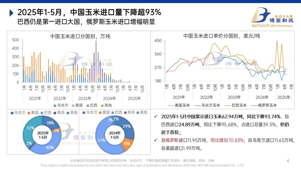 【BOYAR觀察】2025年玉米進口同比下降81%,巴西仍為最大來源國,俄羅斯進口激增186%