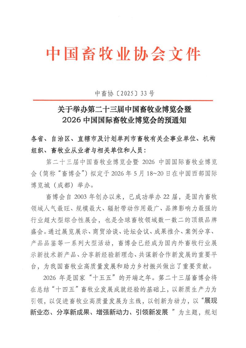 關(guān)于舉辦第二十三屆中國畜牧業(yè)博覽會的預(yù)通知